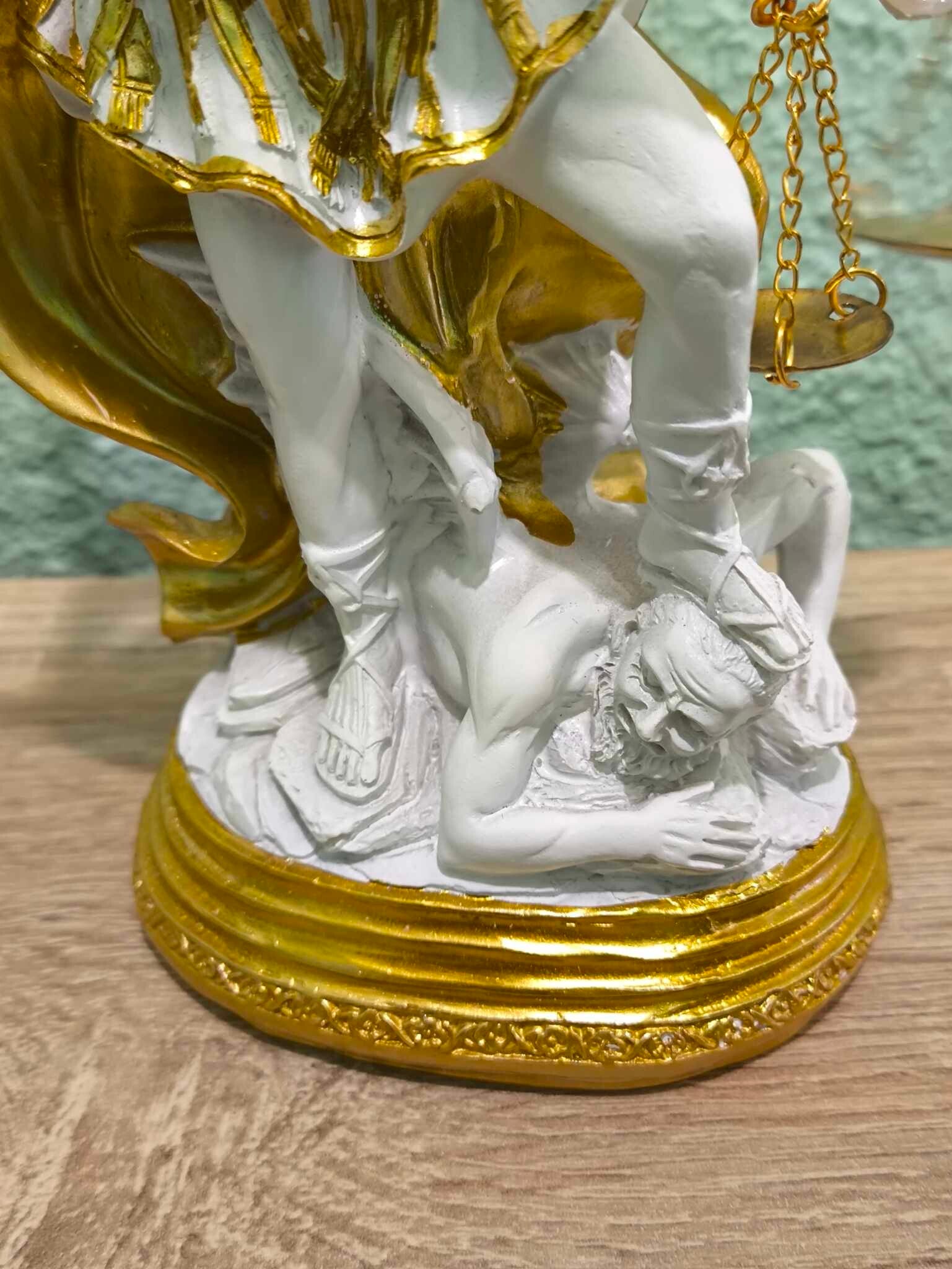 Statue résine peinte à la main de St Michel avec balance de la justice hauteur 20 cm