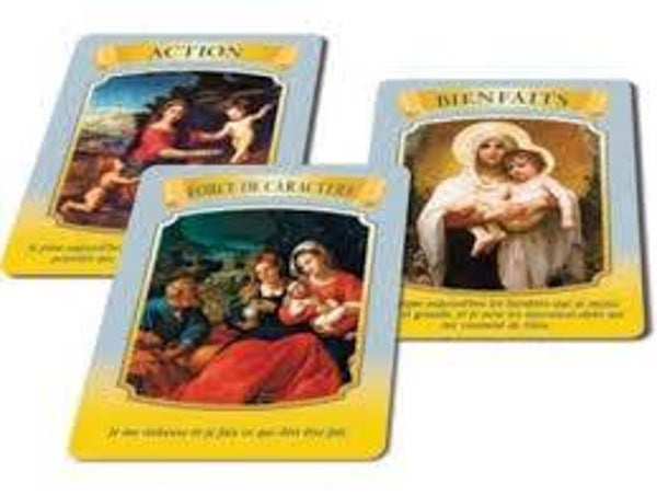 - Chaque carte est magnifiquement illustrée par un tableau biblique.