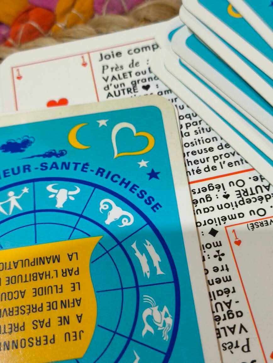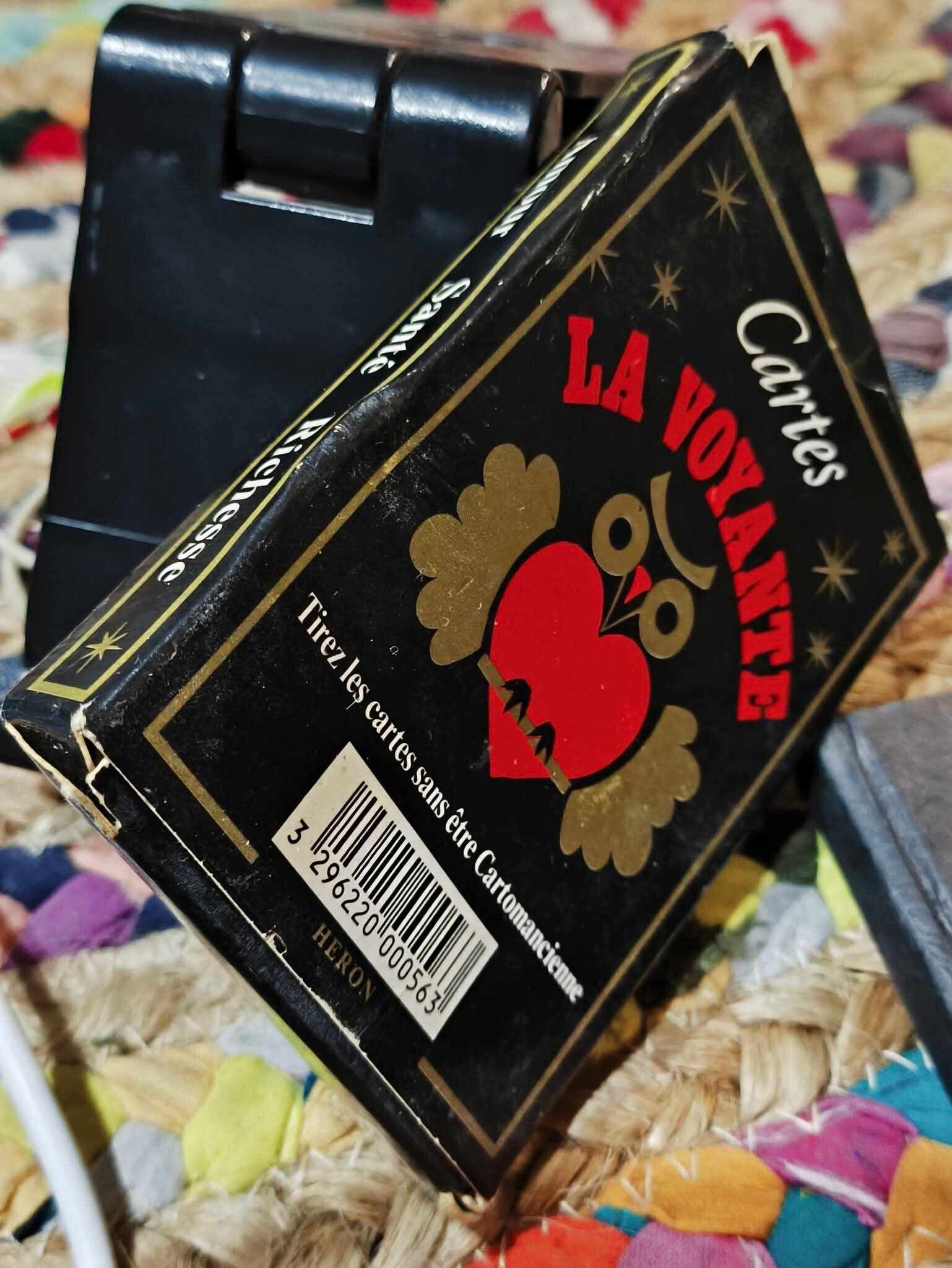 Jeu de carte neuf mais étui abîmé et une carte qui a certainement reçu du liquide et qui a jauni voir les photos.