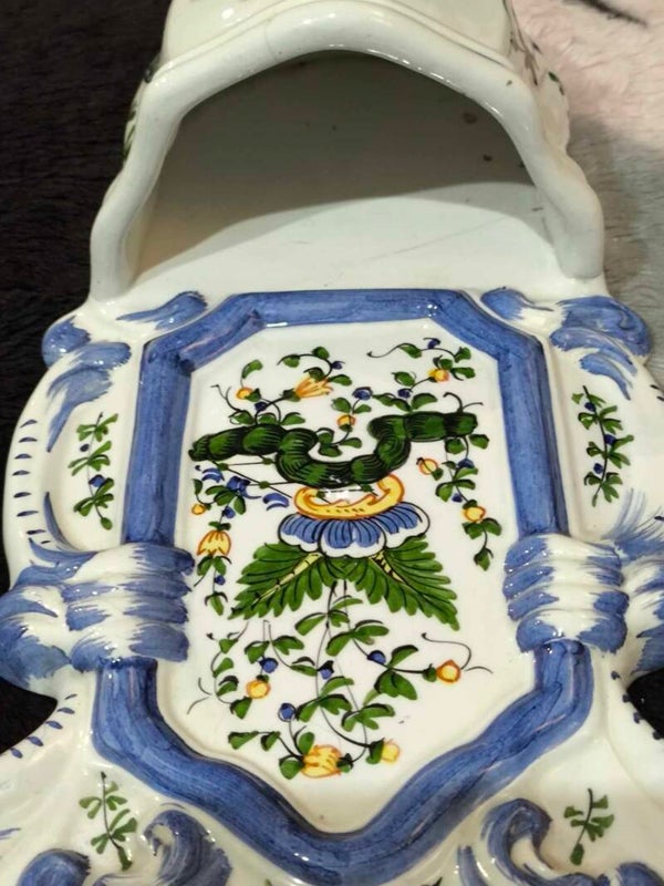 Bénitier fendu à certain endroit voir photo neuf mais mal entreposé lors d'une brocante. En même temps d'aprés moi un bénitier ne devrait pas avoir une apparence neuve et de toute façon on ne jette pas un bénitier donc je vous fait un tarif dérisoire.