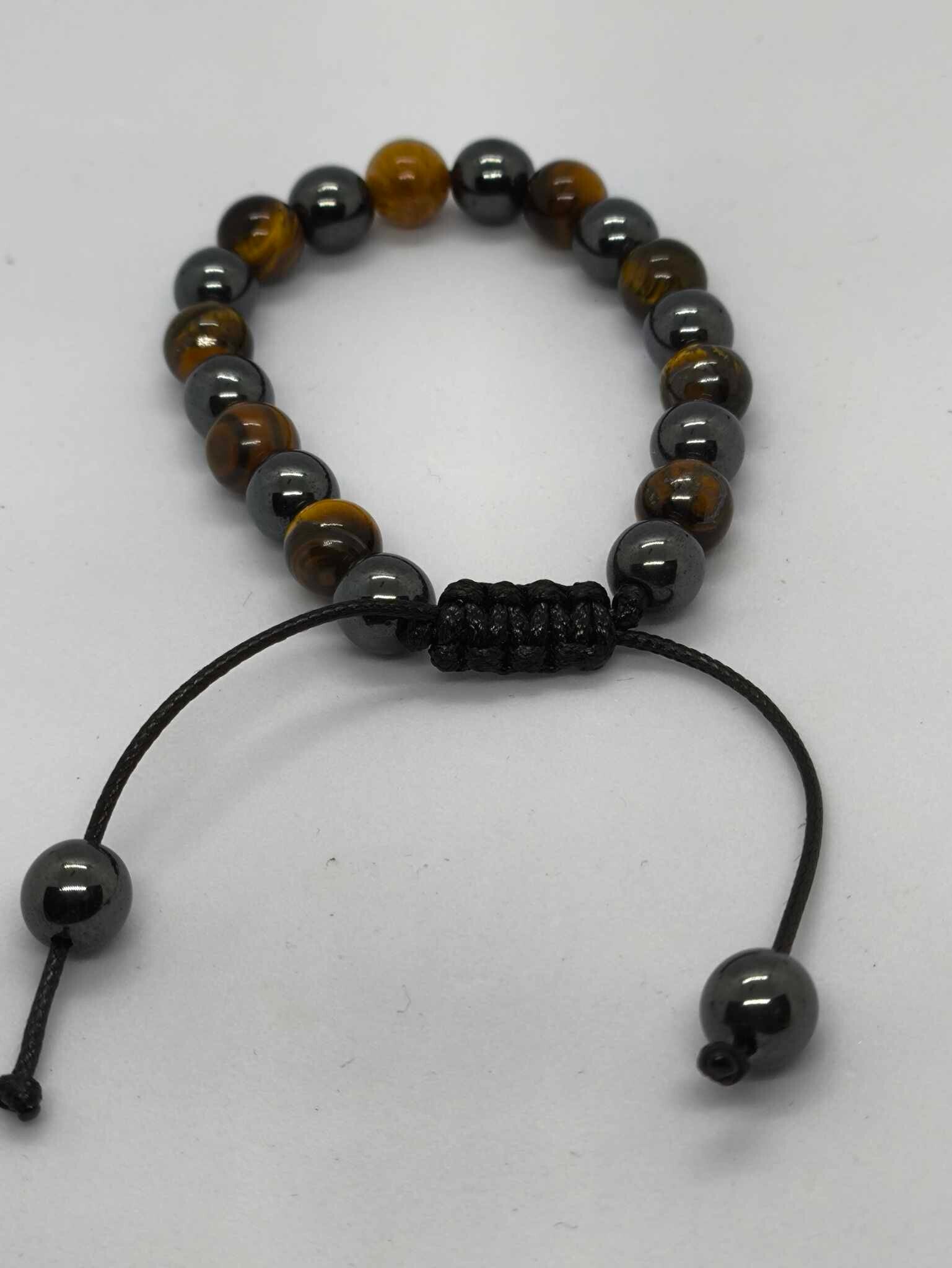 Bracelet réglable Oeil de tigre & Hématite perle de diamètre 8.