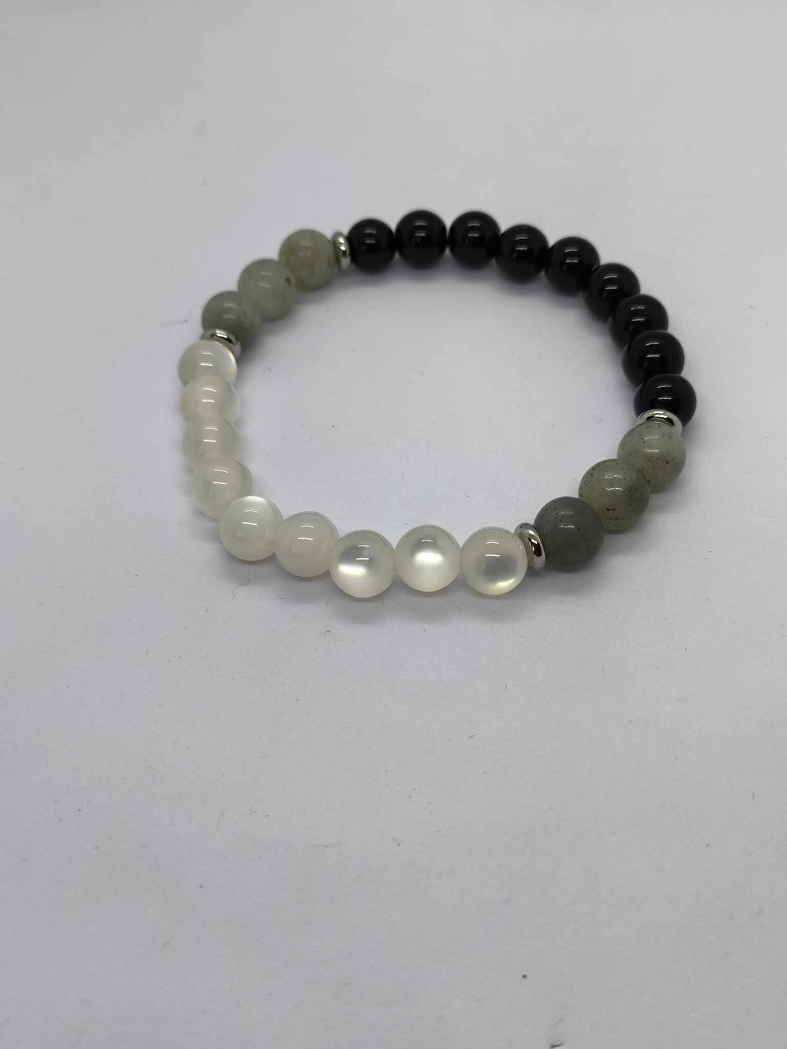 Bracelet Tourmaline, sélenite & Labradorite. Perle de diamètre 6