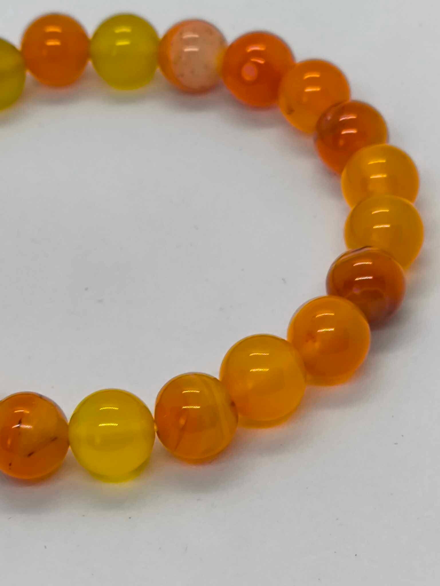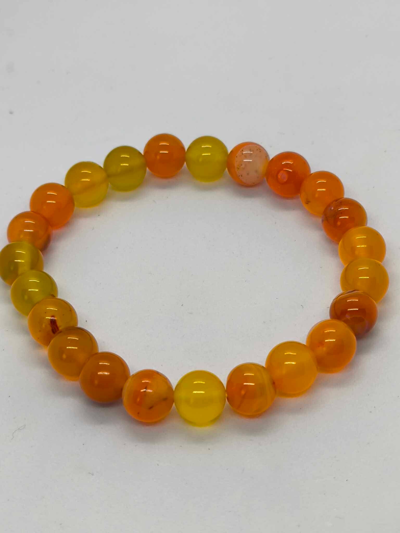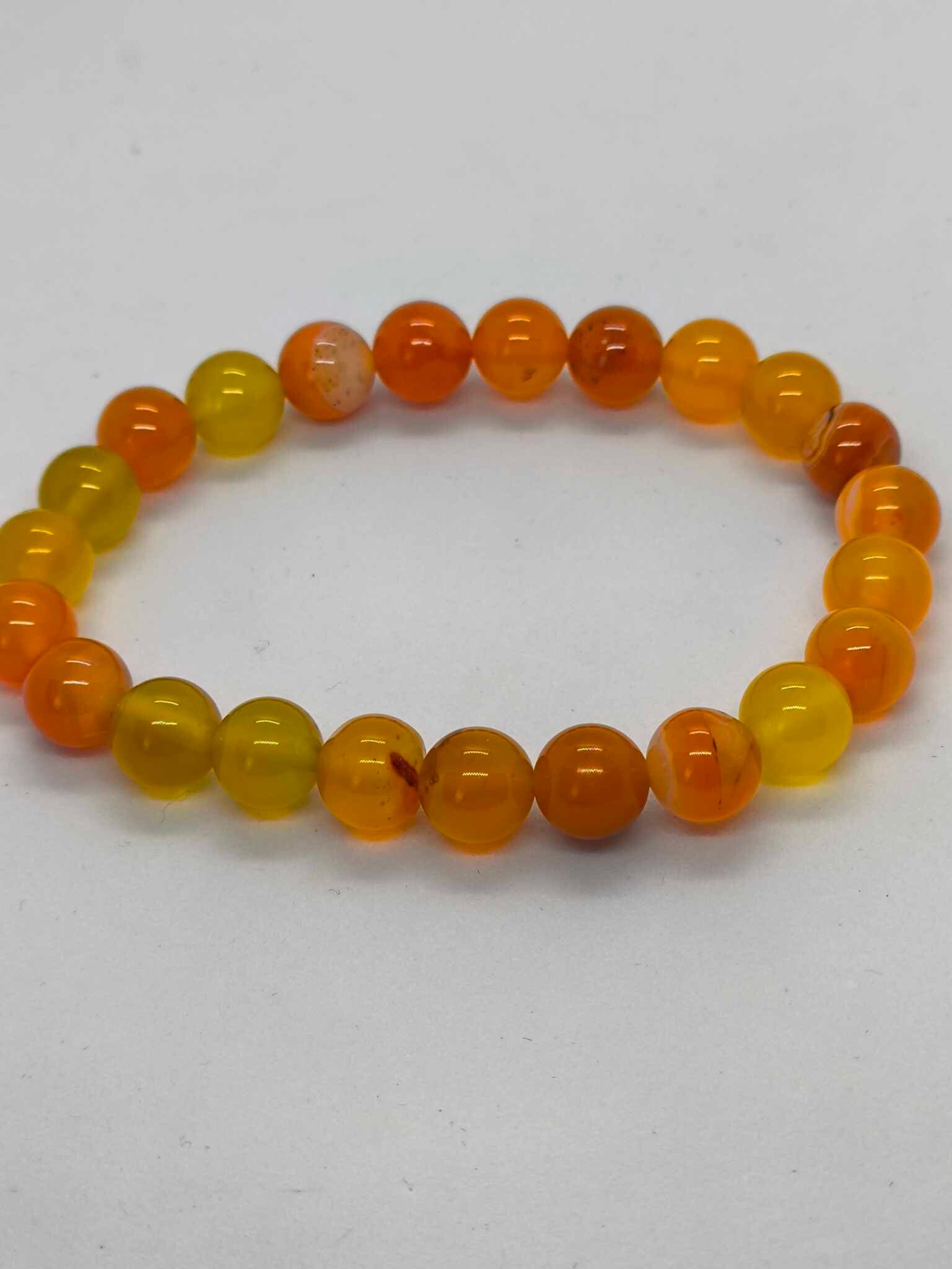 Magnifique bracelet en cornaline avec toutes les nuances existante de sa couleur. Perle de diamètre 8. Je rappel que les photos reflètent mal la bonne couleur, vous ne verrez pas toutes les nuances et parfois ce sera plus clair en vrai que sur les photos.