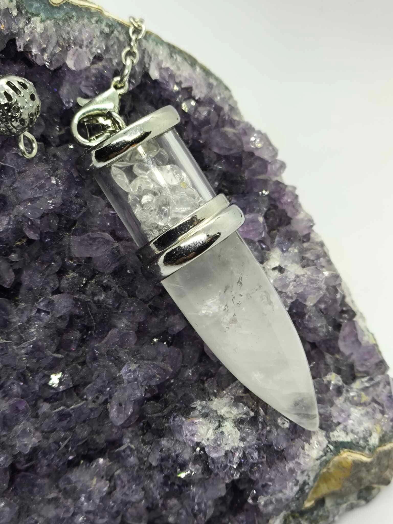 Optez pour la puissance du cristal de roche avec ce magnifique pendule qui contient des éclat de cristal de roche en plus.