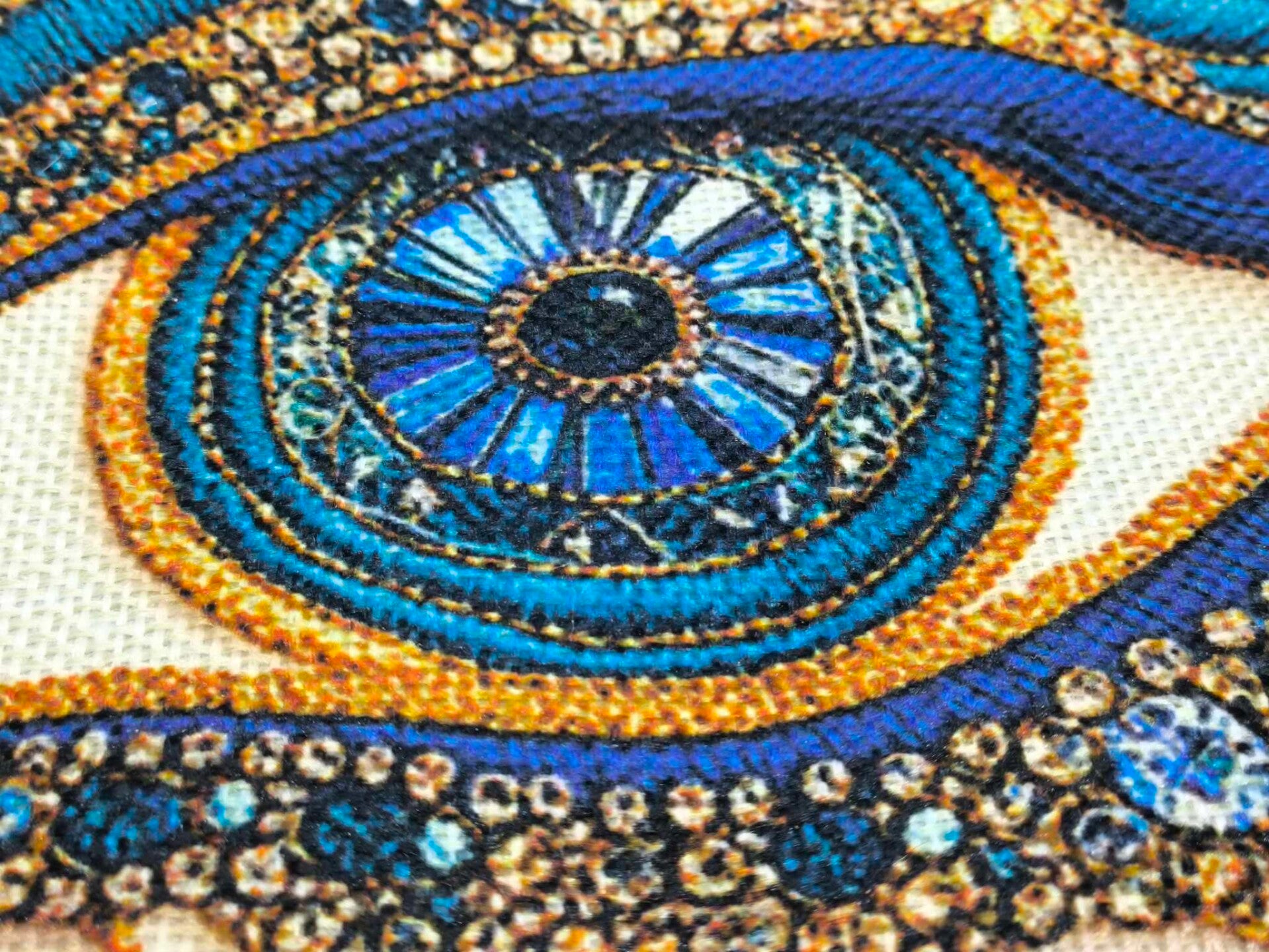 Ornée d'un oeil d'horus, l'oeil bleu grc de protection.