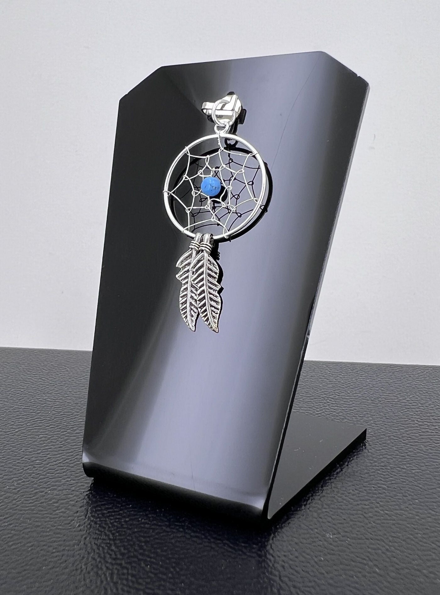 Pendentif attrape rêve avec perle turquoise et plumes