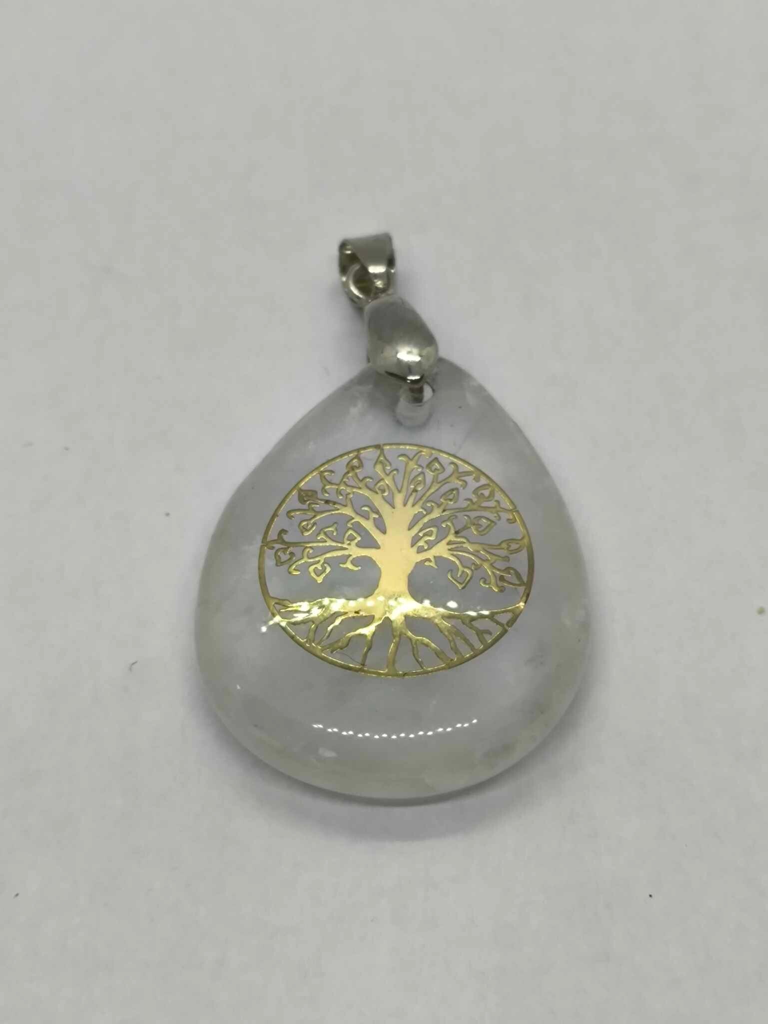 Pendentif forme goutte en Cristal de roche et symbôle Arbre de vie