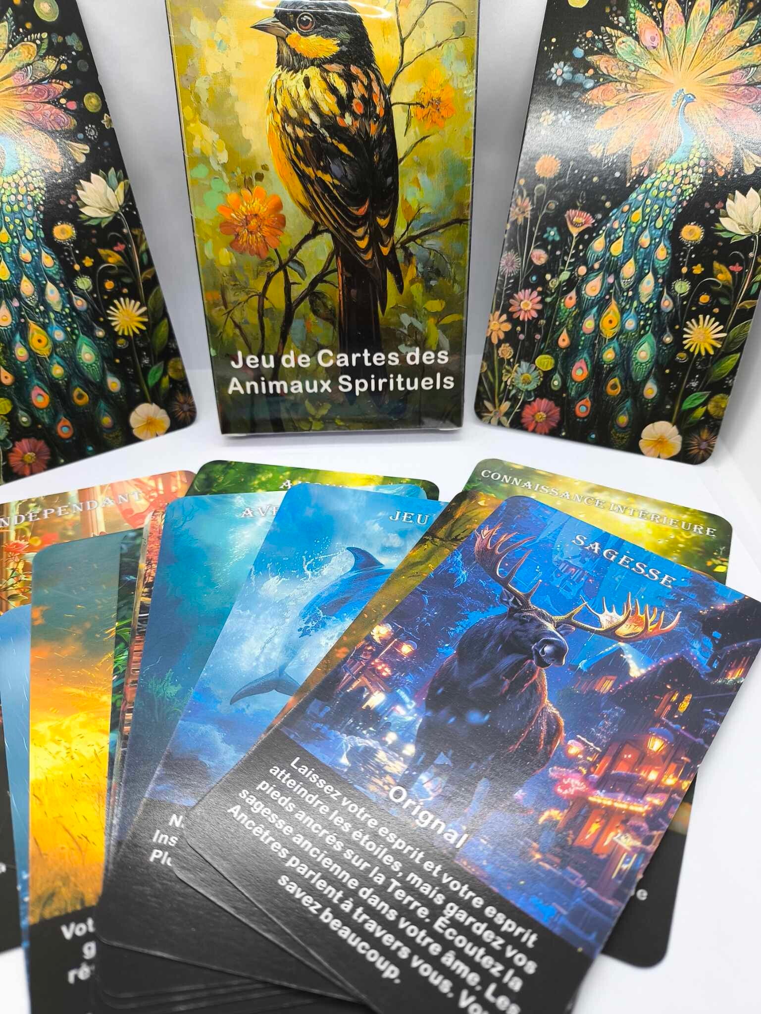 Ce jeu de carte des Animaux spirituels contient des messages spirituels à travers les animaux. Ce sont des messages guides, d'avancement, de compréhensions, de réconfort ou de libération de blocages énergétiques afin de poursuivre votre chemin avec confiance et de réaliser des changements positifs dans votre attitude envers la vie.
